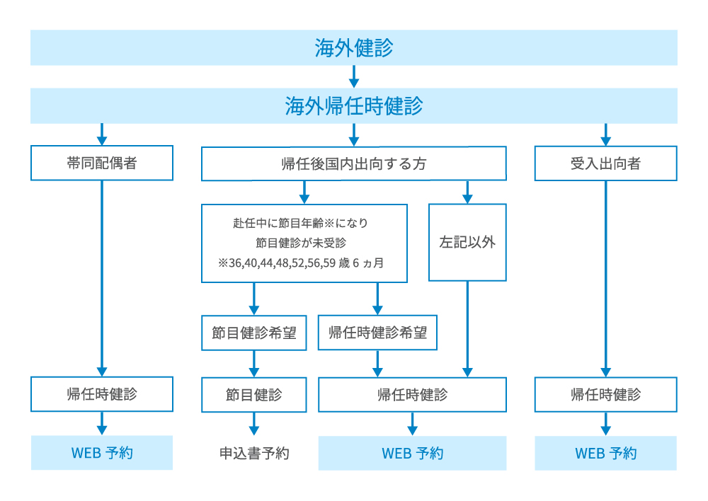 (従業員の帰任時健診はウェルポでの受診はできません。帰任先の健康サポートセンターで受診してください。)